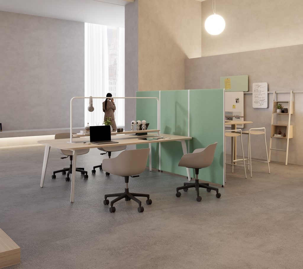 The Navia Office Space Series introduces a fresh and collaborative environment designed to balance focused work with dynamic interaction. Central to the design are self-contained modules, high tables, and integrated niches that encourage spontaneous collaboration among team members.