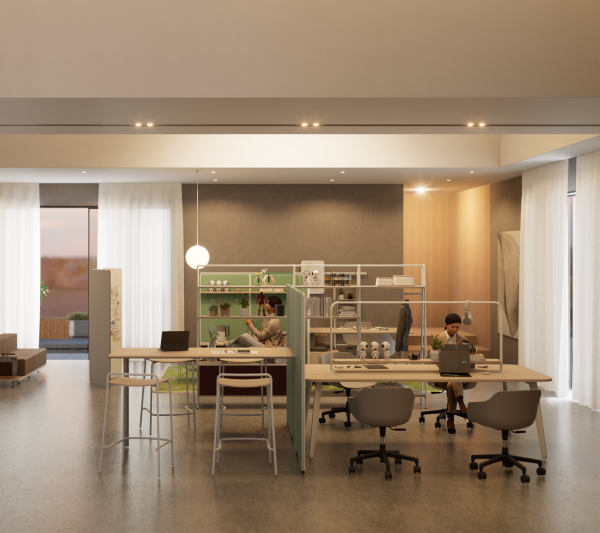 This thoughtful layout fosters both seamless teamwork and individual efficiency, creating a workspace that is both vibrant and intelligently organized.