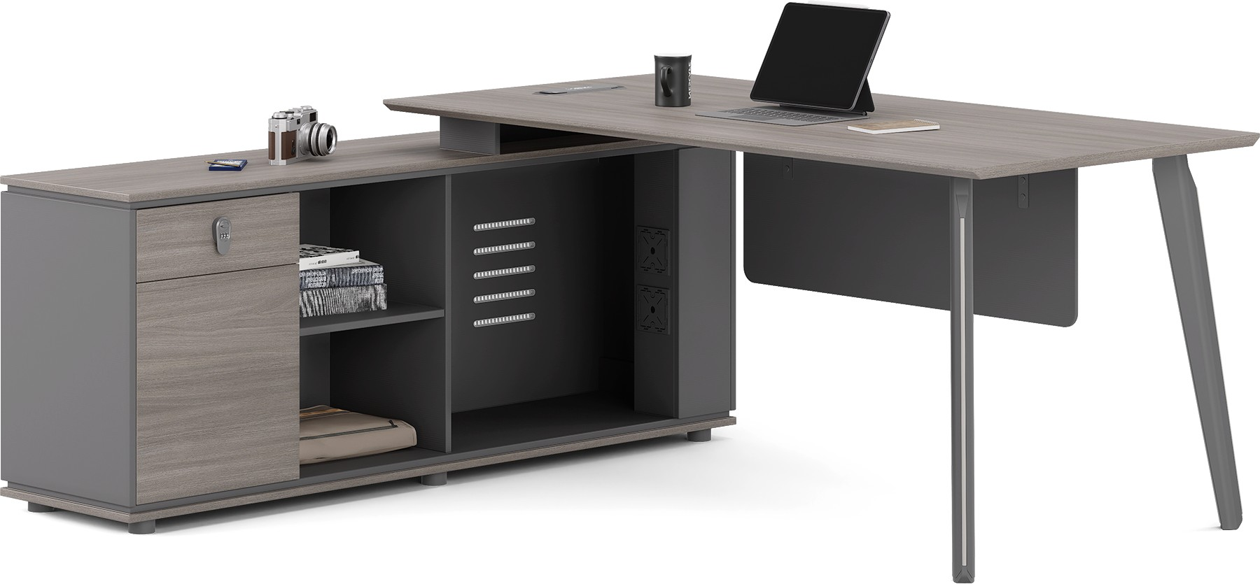 Blending youthful design with smart functionality, the ULTRA Manager Desk creates a dynamic workspace full of creativity and energy. The elegant wood veneer with vibrant accents breaks traditional monotony, while its sleek form and refined details reflect modern professionalism. Equipped with a smart power system, cable management, and secure storage, it ensures efficiency and style in every detail.
